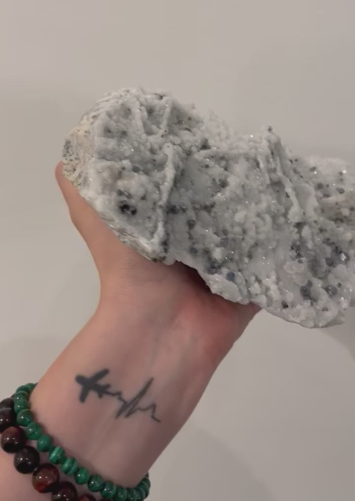 Icy Peaks is a stunning crystal blend of Box Calcite, Galena, and Chalcedony. The Box Calcite enhances energy flow, while Galena offers grounding and protection, and Chalcedony encourages open communication and emotional healing. This crystal brings the refreshing, calming energy of snowy mountain tops, supporting mental clarity and personal transformation. A powerful tool for both physical and spiritual well-being, this one-of-a-kind piece is perfect for anyone seeking harmony and focus in their life.