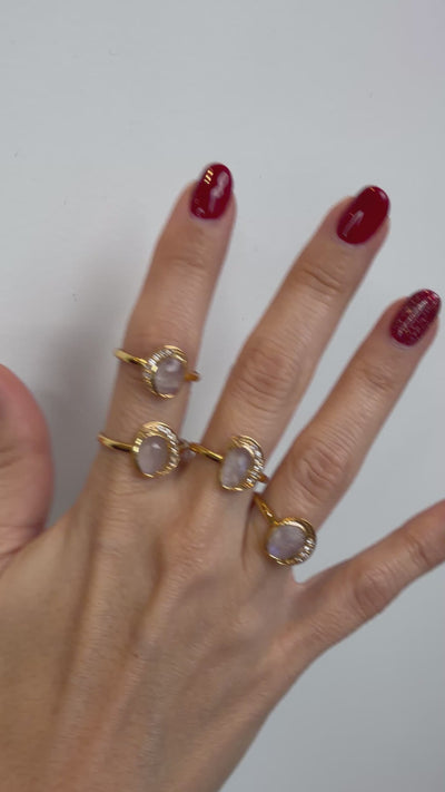 Moonstone & White Topaz - Cosmic Harmony Ring - Sterling Silver Gold Plated - Mystic Star