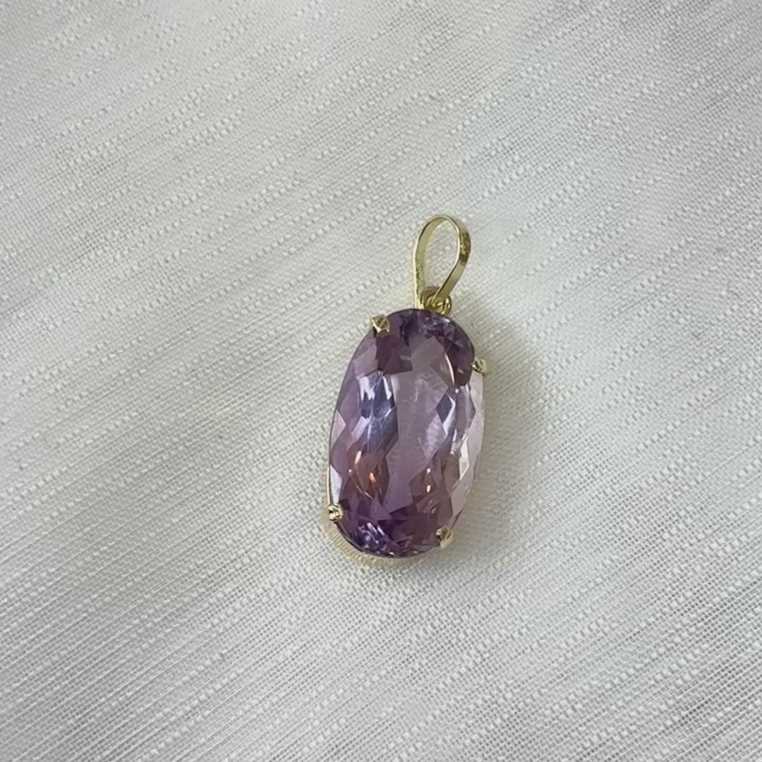 This Amethyst Rose de France pendant from the True Gem Collection features a rich purple amethyst with elegant natural brilliance, set in sterling silver and finished with 18k gold plating (vermeil). The warm gold tone enhances the deep violet color of the gemstone, creating a refined and timeless contrast.