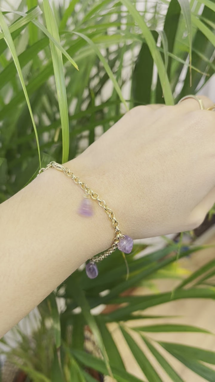 Amethyst - Tumbled 5 Stones - Bracelet - Gold Plated
